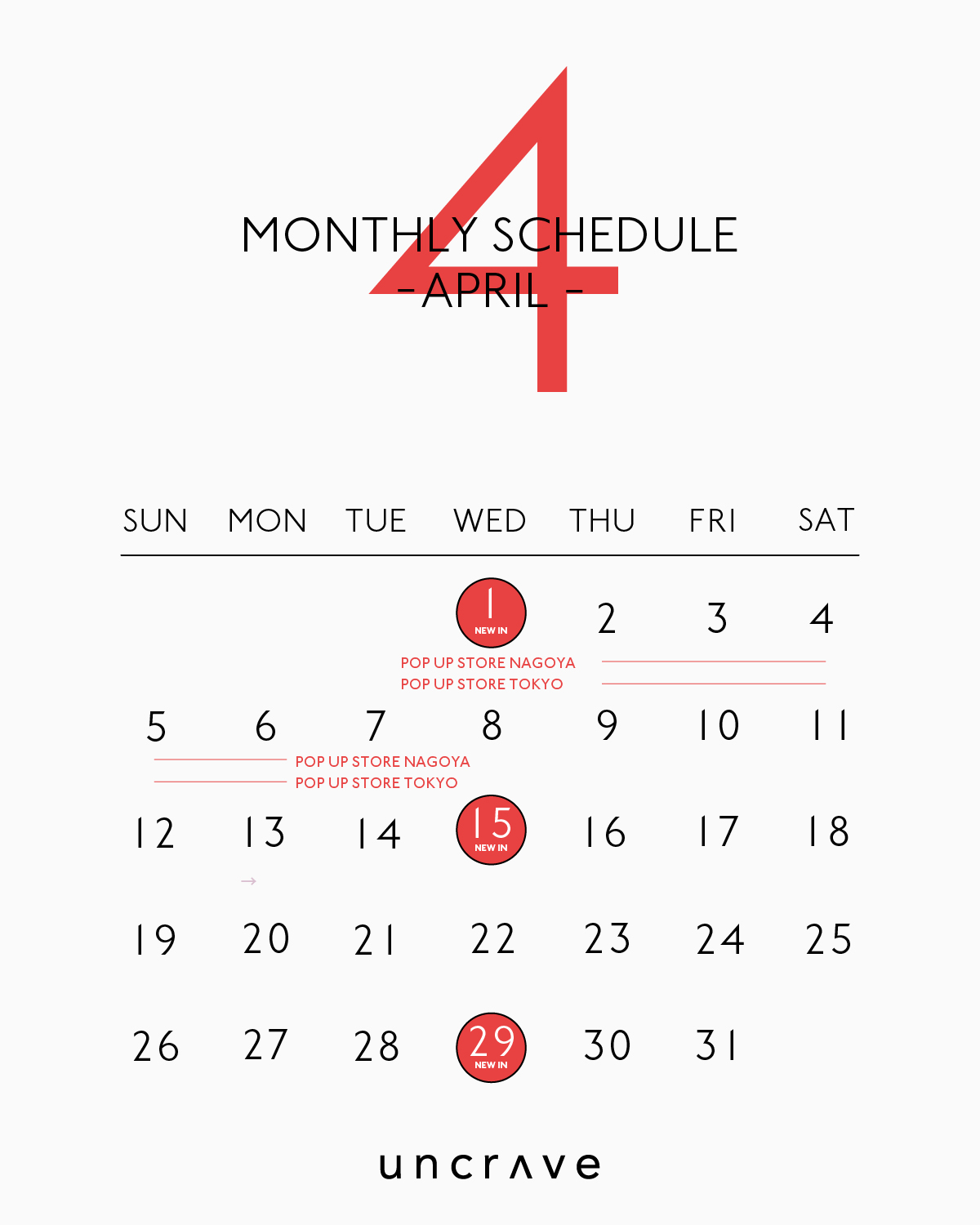 4月7日(水)までuncrave単独POP UP SHOPを開催いたします。
