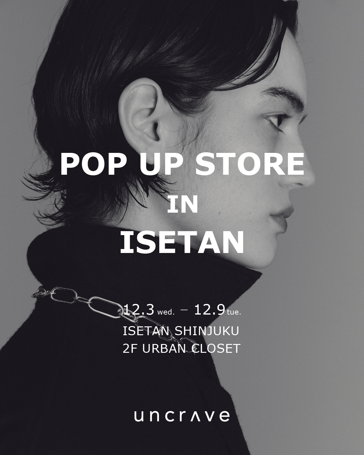 12/3(水)-12/9(火)の期間、伊勢丹新宿店にて、uncrave単独POP UP STOREを開催いたします。