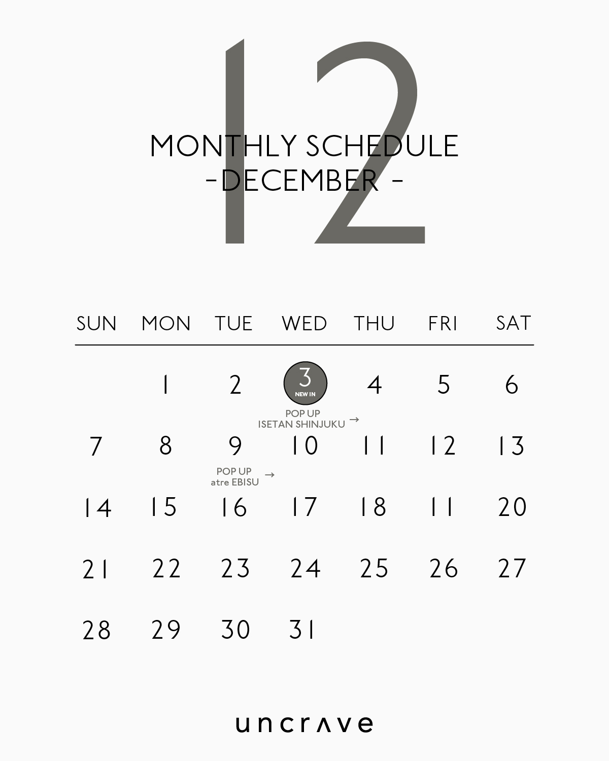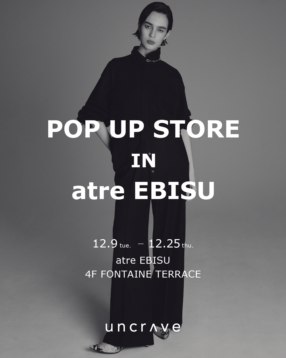 12/9(火)~12/25(木)の期間、アトレ恵比寿店にて、uncrave単独POP UP SHOPを開催いたします。
